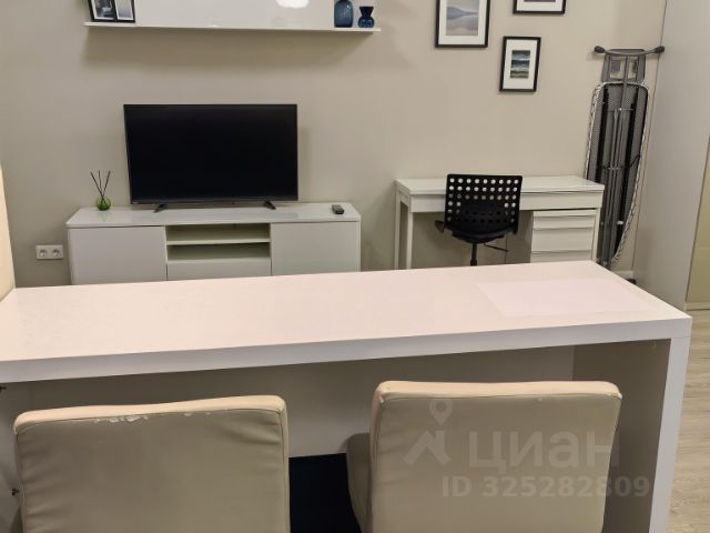Студия оснащена мебелью и бытовой техникой (ТВ, стиральная машина, холодильник и т.д.)