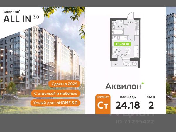 Купи квартиру в "ЖК All in 3.0" Отделка В квартире выполнена предчистовая отделка WhiteBox +Возможен дозаказ отделки в любом из 3 цветов: SAND, TERRA, GRAPHITE Отделка входит в стоимость квартиры в ДДУ ЖК Аквилон All in 3.0 в Пушкинском районе Петербурга. Это 12-этажный дом на Школьной улице на 812 квартир с отапливаемым подземным паркингом. -Малошумные лифты -Сквозные парадные -Светопрозрачные входные группы -Увеличенная высота первого этажа -Безбарьерная среда -Подземный паркинг Как и все другие проекты, ЖК Аквилон All in 3.0 мы реализуем на базе концепции Э4. Она подразумевает внедрение технологических разработок по 4 направлениям: энергоэффективности, эргономики, экологичности, экономии средств и времени жителей. Стандарты Группы Аквилон для вашей комфортной жизни Thermo-S экономия на коммунальных платежах за счет дополнительно утепленных стен, кровли и цоколя. Энергоэффективные окна с селективным покрытием и аргоновым заполнением Soundstop - дополнительная шумоизоляция внутренних перегородок и межэтажных перекрытий, шумозащитные окна, малошумные лифты Light-in - в квартирах устанавливаются широкоформатные окна, увеличены на 30%. Высота подоконников на уровне 60 см от пола. Vent-in - в каждой комнате есть клапаны индивидуальной вентиляции, которые обеспечивают приток свежего воздуха с улицы. inHOME 3.0 умный дом в каждой квартире Интеллектуальная цифровая система, которая позволит дистанционно решать бытовые вопросы, управлять квартирой и экономить на оплате коммунальных услуг. В состав inHOME входят: IP-домофон, Face key, "умные" счетчики, датчики протечки, дистанционное отключение розеток, и т.д. Жилой комплекс расположится в уже развитом районе с хорошей транспортной и социальной инфраструктурой: рядом — выезд на КАД, 15 минут до метро "Купчино" и аэропорта Пулково. #25facM