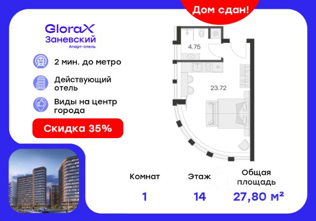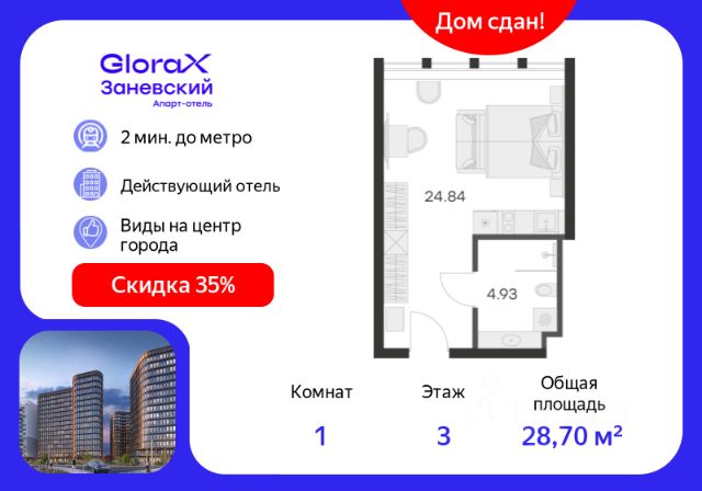 Продается апартамент-студия на 2-м этаже в сданном Апарт-комплексе бизнес-класса "GloraX Заневский". Ключи сразу! Общая площадь лота составляет 29,58 кв. м, из которых 24,32 кв. м отведено под жилую. Номер апартамента - 224. Преимущества: - Полная чистовая отделка - Возможность покупки меблировка и техника - Вход по ключ-карте - Прачечная на 1 этаже - Возможность дозаказа отельного сервиса - Программы доходности - Летний бар и променад - Воркаут площадка - Pet-friendly Апартаменты "GloraX Заневский" - проект бизнес-класса с развитой инфраструктурой, удовлетворяющей все потребности самых взыскательных гостей. Располагается в одном из наиболее перспективных, районов Петербурга в 2х минутах от метро "Ладожская" и в 10 минутах от Невского проспекта. В "GloraX Заневский" есть все, что необходимо для комфортной жизни, работы и отдыха. Инфраструктура, покрывающая все потребности и ожидания собственников и арендаторов. В радиусе 150 метров находятся супермаркеты с возможностью доставки продуктов прямо до дверей апартаментов. На 1000 кв. м. общественных пространств расположится уютный лобби-бар, ресторан мировой кухни на 80 человек и оборудованные коворкинги. В апартаментах "GloraX Заневский" выполнена современная отделка с использованием высококачественных экологичных материалов. В проекте предусмотрен подземный отапливаемый паркинг на 100 мест, куда можно спуститься на лифте прямо от дверей апартаментов. Узнайте подробности в Отделе продаж.