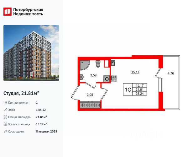Продается уютная студия от застройщика в жилом комплексе "Астра Континенталь" в активно развивающимся Невском районе. До метро можно добраться пешком всего за 5 минут. Удобная, классическая, функциональная европланировка, вместительная прихожая 3.09 м². Общая площадь студии - 21.83 м², жилая 15.12 м², высота потолка 2.77 м. Квартира продается с отделкой "NORD LINE WHITE ВК NEW". Что особенного в ЖК "Астра Континенталь"? • Уникальная локация 400 метров до метро, 300 метров до благоустроенной набережной • Самодостаточный квартал со всей инфраструктурой в 3-х км от центра • Впечатляющий объем благоустройства: 30 000 кв. метров рекреационных зон с променадом и гейзерными фонтанами • Масштабный парк "Город Спорта"