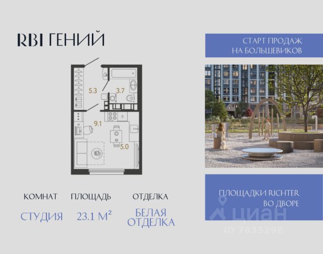 Новый дом "Гений" строится на правом берегу Невы в зелёной локации на проспекте Большевиков. До метро "Улица Дыбенко" — 10 минут пешком, столько же на авто до Володарского моста и набережной. До выезда на КАД и до площади Александра Невского — 20 минут. Жить в окружении знакомых улиц, парков и скверов, где в пешей доступности с десяток школ и детских садов, а до главного проспекта Петербурга полчаса пути — гениально, не правда ли? Строительство ведётся в две очереди. В трёх корпусах I-й очереди (от 14 до 20 этажей) — 611 квартир от студий до четырёхкомнатных. Есть эксклюзивные квартиры с эркерами и террасами. На последних этажах квартиры с потолками 3 метра. Все квартиры продаются с отделкой White Box. Фишка дома — приватный двор с двумя дворами, объединенными парящим мостом. Любители уединённого отдыха могут гармонизироваться в зелёных кабинетах среди цветущих деревьев или путешествовать сквозь пространство и время посредством буккроссинга — во дворе появится библио-беседка. Энерджайзеры смогут поработать и организовать комьюнити-активности в импровизированном уличном коворкинге с круглым столом или позаниматься на профессиональных outdoor-тренажёрах и степ-платформах. Детские площадки от АФА х Richter RUS тоже на территории обоих дворов. В правом появится домик "Мечтатели" с большой песочницей, брёвнами-балансирами и витражным окном. А в левом появятся сразу три площадки: "Головоломка" с лазательным лабиринтом, "Волна" с уникальным музыкальным игровым оборудованием и переговорными трубами, "Вращение" с большой качелей. Пространства дворов соединит пешеходный мост. Под ним проложат зелёный променад, где можно будет вздремнуть в гамаке, загорать и ловить солнечных зайчиков, любуясь зеркальными множествами, устраивать семейные пикники в бранч-зоне под навесом. Как и дворы, бульвар полностью без машин, охраняется 24/7 и доступен только для жителей по индивидуальному цифровому ключу. Внутри дома концепция продолжится в интерьерах лобби, которые воссоздают футуристичные кабинеты гениальных изобретателей 70-х годов. Для каждой очереди — своё двухровневое лобби с ДНК-лестницей и акцентными светильниками, стойкой ресепшн, welcome-зоной, переговорной и кофепоинтом. В четвёртом корпусе (строится в I-й очереди) появится клуб-гостиная с Wi-Fi, которая трансформируется в коворкинг. Для жителей оборудуют подземный паркинг с лифтом на жилые этажи: 601 машиноместо, среди которых 32 — с зарядкой для электромобилей. В каждой парадной — вместительные колясочные. Дом "Гений". Пространство гениальных открытий