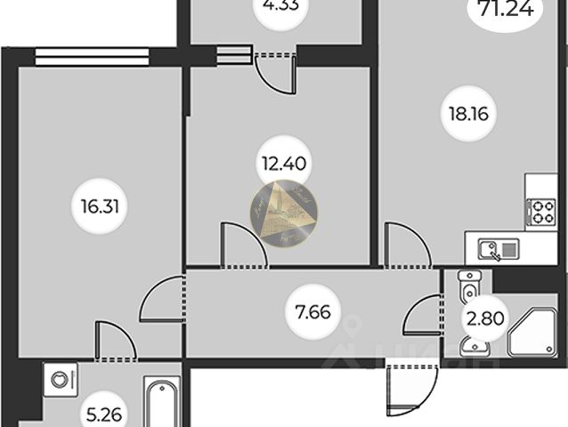 Предлагаем Вам однокомнатную кваpтиру в г. Санкт-Пeтepбурге пo проспекту Мaршакa, 26, расположенную на 6 этаже 19 этажного монолитного дома. Общая площадь квартиры 33,4 кв.м., площадь комнаты 17,3 кв.м., площадь кухни 8,5 кв.м., Большой совмещенный санузел 4,1 кв.м.