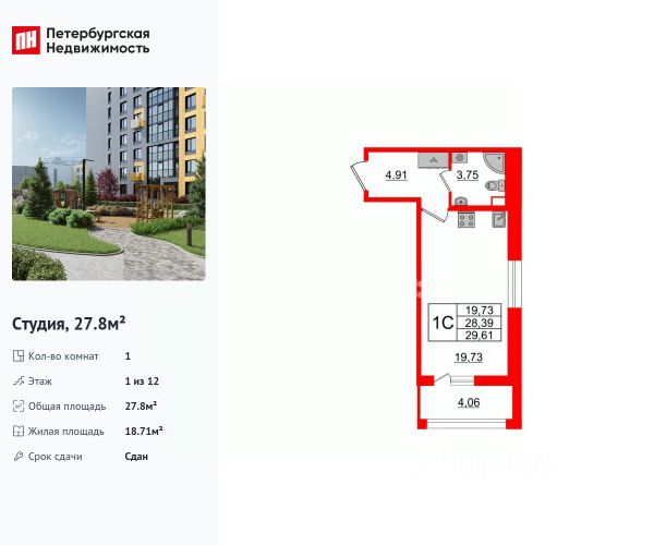 Продается просторная студия от застройщика в жилом комплексе "Прайм Приморский" в динамичном Приморском районе. До метро можно добраться на транспорте всего за 15 минут. Удобная, классическая, функциональная европланировка, просторная прихожая 5.18 м². Общая площадь студии - 27.6 м², жилая 18.09 м², высота потолка 2.77 м. Квартира продается с отделкой "Норд Лайн серый комфорт". Что особенного в ЖК "Прайм Приморский"? • Живописные виды на Шуваловский карьер и лесной массив • "Парящие" французские балконы • Центральная входная группа • Креативное пространство в центре проекта, летняя терраса для отдыха • Приватные лаундж-зоны на крыше домов (3 корпус)