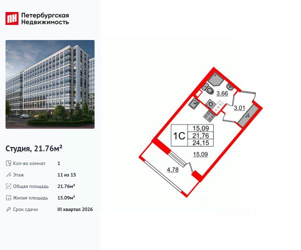 Продается уютная студия от застройщика в жилом комплексе "Пульс Премьер" в активно развивающимся Невском районе. До метро можно добраться на транспорте всего за 10 минут. Удобная, классическая, функциональная европланировка, вместительная прихожая 3.07 м². Общая площадь студии - 24.3 м², жилая 18.08 м², высота потолка 2.77 м. Квартира продается с отделкой "Норд Лайн светлый комфорт". Что особенного в ЖК "Пульс Премьер"? • Премиальные виды на Неву • Отличная транспортная доступность: 2 станции метро и крупные магистрали • Пешеходный променад с ландшафтным дизайном и зонами отдыха • Центр притяжения - городская площадь у набережной с современным благоустройством • Алюминиевые окна в квартирах Хай Флет (High Flat) (последние этажи)