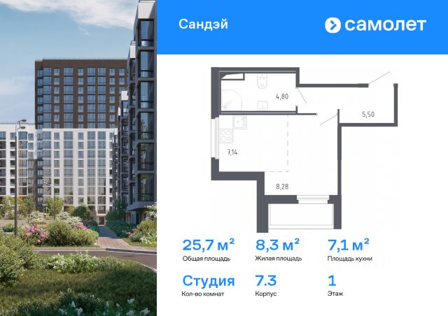 Строим кварталы для жизни с заботой о будущем. Предлагается квартира студия комфорт-класса 22,83 кв.м в корпусе 7.2 на 10 этаже, в ЖК "Сандэй" Квартира без отделки. Доступность опции "отделка" и возможность комплектации мебелью и декором уточняйте у застройщика. Приобрести квартиру возможно по специальным акциям от застройщика, с текущими условиями акций можно ознакомиться в блоке "Акций". Цена динамическая и может отличаться, уточняйте актуальность у застройщика. Сандэй современный жилой комплекс на юго-западе Санкт-Петербурга у парка Сосновая поляна. Мы уже построили 7 средне-этажных домов, вся социальная и бытовая инфраструктура уже работает, рядом есть детские сады, школы, поликлиники и магазины проживание будет очень комфортным. Прямо под окнами большой зеленый парк для прогулок - Сосновая Поляна В 7 минутах пешком расположена железнодорожная станция, от которой можно за 25 минут добраться до центральной части города Балтийского вокзала. В 15 минутах езды самые известные пригороды Петербурга: Стрельна, Петергоф, а также берег Финского залива.
