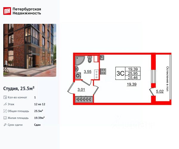 Продается просторная студия от застройщика в жилом комплексе "Сенат" в престижном Московском районе. До метро можно добраться пешком всего за 20 минут. Удобная, классическая, функциональная европланировка, вместительная прихожая 2.85 м². Общая площадь студии - 26.3 м², жилая 20.65 м², высота потолка 2.77 м. Квартира продается с отделкой "NORD LINE WHITE ВК". Что особенного в ЖК "Сенат"? • Престижный Московский район • Авторская архитектурная концепция • Центральная входная группа с ресепшен и лаундж-зонами • Променад с воздушным мостом и просторными зонами отдыха • Зимний каток, площадки SetlKids и уютные дворы-патио • Инновационный Лицей Setl с оригинальной архитектурной концепцией и уникальной образовательной средой