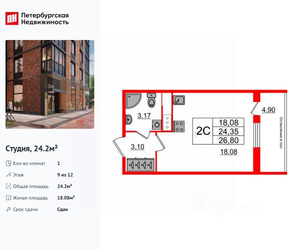 Продается уютная студия от застройщика в жилом комплексе "Сенат" в престижном Московском районе. До метро можно добраться пешком всего за 20 минут. Удобная, классическая, функциональная европланировка, вместительная прихожая 3 м². Общая площадь студии - 24 м², жилая 18 м², высота потолка 2.77 м. Квартира продается с отделкой "Норд Лайн светлый комфорт". Что особенного в ЖК "Сенат"? • Престижный Московский район • Авторская архитектурная концепция • Центральная входная группа с ресепшен и лаундж-зонами • Променад с воздушным мостом и просторными зонами отдыха • Зимний каток, площадки SetlKids и уютные дворы-патио • Инновационный Лицей Setl с оригинальной архитектурной концепцией и уникальной образовательной средой