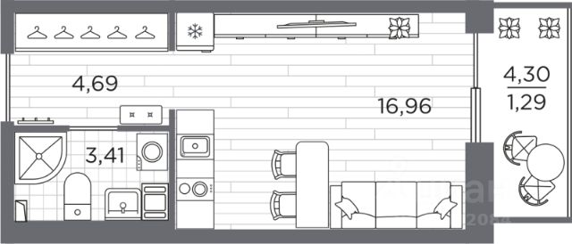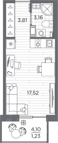 Продаётся студия в строящемся доме (Дом 6.3.1), срок сдачи: II-кв. 2028, общей площадью 25.69 кв.м., на 2 этаже.