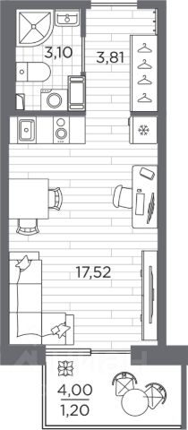 Продаётся студия в строящемся доме (Дом 6.3.1), срок сдачи: II-кв. 2028, общей площадью 26 кв.м., на 4 этаже.