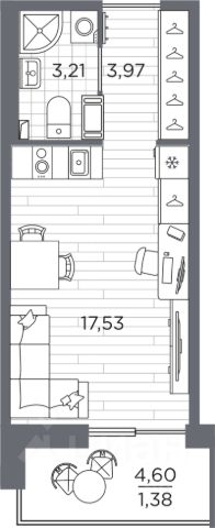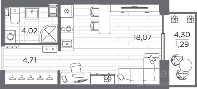 Продаётся студия в строящемся доме (Дом 6.2.1), срок сдачи: II-кв. 2028, общей площадью 28.13 кв.м., на 18 этаже.