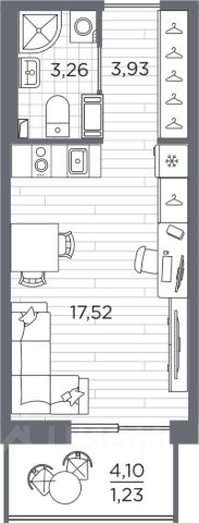 Продаётся студия в строящемся доме (Дом 6.3.1), срок сдачи: II-кв. 2028, общей площадью 26.02 кв.м., на 5 этаже.