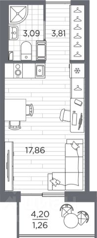 Продаётся студия в строящемся доме (Дом 6.3.1), срок сдачи: II-кв. 2028, общей площадью 26.09 кв.м., на 2 этаже.