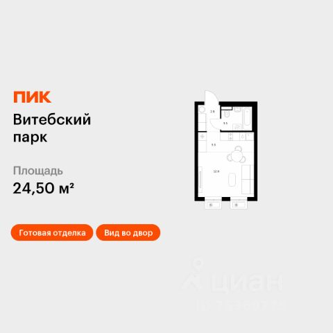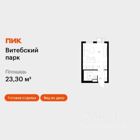Продаётся квартира-студия площадью 26,8 кв.м на 10 этаже 12 этажного дома (Корпус 6, Секция 2) проекта ПИК Витебский парк. Светлый просторный подъезд на уровне земли, функциональная планировка, большие окна, предчистовая отделка. Жилой квартал "Витебский парк" находится во Фрунзенском районе Санкт-Петербурга, в 15 минутах пешком от метро "Обводный канал". А в 2027 году всего в паре минут от проекта планируют открыть станцию метро "Боровая". В квартал входят 3 детских сада, школа и 7 жилых домов с дворами-парками, куда не могут зайти посторонние люди и заехать автомобили. Школа на 1250 мест и детский сад на 350 мест откроются одновременно с заселением первой очереди, это значит, что жители проекта смогут отдать своих детей в новые образовательные учреждения на территории квартала. Во дворах приятно отдыхать, знакомиться с соседями и даже заниматься йогой, а для детей мы построим детские площадки. Рядом появятся современные спортивные площадки. На первых этажах домов откроются магазины, кафе и другие сервисы. Через весь жилой район протянется широкий пешеходный бульвар для прогулок и спорта. Рядом с "Витебским парком" есть всё для комфортной жизни: магазины, торговые центры, фитнес-клубы, кафе и рестораны, а ещё детские сады, школы, вузы и поликлиника. Артикул 1005311 (Застройщик ООО "СЗ "Лиговский Сити") [cn_sbp_1810968]