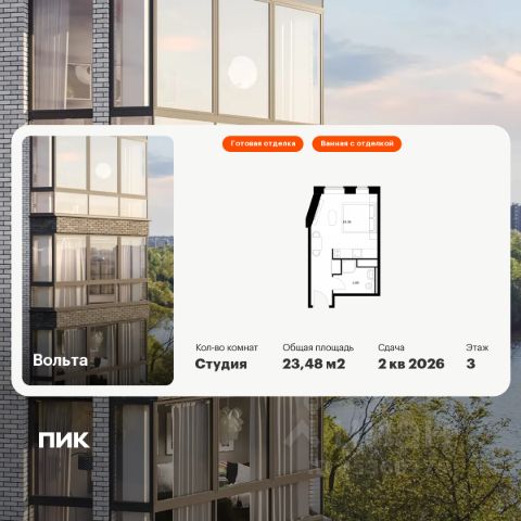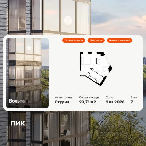 Продаются апартаменты-студия площадью 21,9 кв.м на 4 этаже 15 этажного дома (Вольта, Секция 1) проекта ПИК Вольта. "Вольта" - готовые апартаменты, которые можно приобрести для себя или сдавать через профессиональную управляющую компанию "МТЛ". Она возьмёт на себя заботы по обслуживанию и сдаче в аренду на короткий и длительный срок. Проект расположен недалеко от исторического и делового центра Санкт-Петербурга. Дорога на автомобиле до Невского проспекта займёт 15 минут. До станции метро "Ладожская" получится дойти за 8 минут, до двух остановок общественного транспорта - за минуту. Рядом находятся четыре вокзала и Свердловская набережная. На первом этаже предусмотрено просторное дизайнерское лобби, ресторан, круглосуточный ресепшен и кабинет врача. Кроме того, здесь появятся такие сервисы, как химчистка, прачечная, клининг, доставка продуктов, консьерж-сервис. Для прогулок возле реки Охты благоустроят набережную. Для автомобилей предусмотрена парковка и подземный паркинг. Артикул 818608 (Застройщик АО СЗ "Ладожский") [cn_sbp_1755581]
