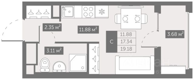 Просторная студия ЖК "Аэросити". Студия квадратной формы, позволит воплотить в жизнь любые дизайнерские решения. Идеальный шестой этаж. Окна в просторный двор. Дом кoмфоpт клаcca в Шушapax , Пушкинcкий район.