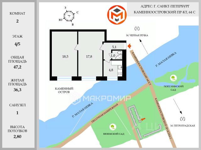 К вашему вниманию представлена интересная 2 комнатная квартира в историческом центре г.Санкт-Петербург. Квартира находится в непосредственной близости от Большого Проспекта ПС, в шаговой доступности от двух станций метро Чкаловская и Петроградская. Во дворе достаточно парковочных мест для вас и ваших гостей. В микрорайоне огромное количество детских садов и школ, ШОР, музыкальная школа. Про сетевые магазины даже не буду писать, их там более чем достаточно. Для вашего досуга музеи, театры, кино, выставки, стадионы, рестораны, кафе, бутики, фитнес клубы, набережные, рынки и многое другое. Во дворе находится известный "Арт-Двор Нельсона"