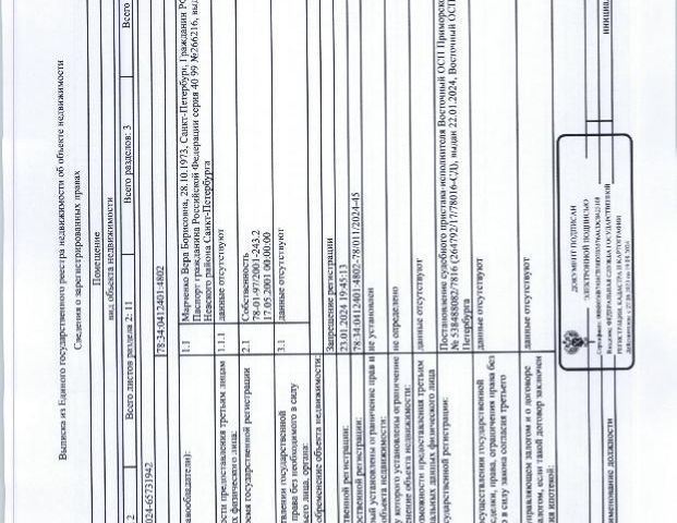 Данные получены с сайта ГИС Торги. Лот5 (повторные): Подвергнутое аресту СОСП ГМУ по и/п 66838/25/98078-ИП и принадлежащее должнику Фахритдинову М.С., арестованное имущество: квартира общ.пл. 61,8 кв.м., кадастровый 78:34:0004155:10313, расположенная по адресу: г. Санкт-Петербург, муниципальный округ 65, ул. Яхтенная д. 28, стр. 1, кв. 46. Обременение: Арест, запрет регистрационных действий. Форма 7 и 9 от 11.12.2025, в квартире зарегистрировано 2 человека. Сведения о задолженности по взносам на капитальный ремонт ФССП не предоставлены.