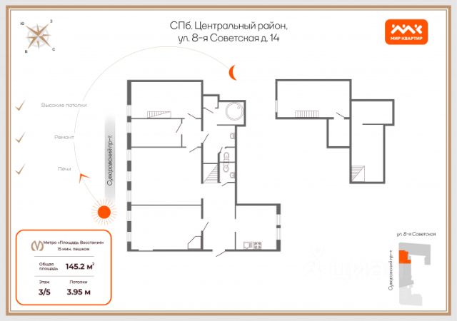 Арт. 77936216 Город: Санкт-Петербург Район: Центральный Метро: Достоевская Адрес: Рубинштейна, 15-17 Этаж/этажность: 2/6 Объект: Свободная планировка Потолок: 3.4 м Дом: Кирпичный , 1910 года постройки. Перекрытия - смешанные. Ухоженная парадная. Планировка: Свободная планировка. Общая площадь - 125 кв.м. Жилая площадь - 90 кв.м. Описание квартиры: Светлая, просторная квартира. В квартире 6 окон - очень солнечная. Имеются теплые полы. Бойлер JASPI Finland 500 литров. Система повышения давления в водопроводе (автоматическая насосная станция Villo) 6-10 bar. Вода из смесителей с хорошим напором. В маленьком Сан.Уз плитка из нержавеющей стали на полу. Два Сан.Уз 10 и 6 кв.м. Ванная 470 л. Albatross. 6 смесителей. 2 унитаза, 1 писсуар , 2 душа, два умывальника. Сантехника Gessi, Boffi, Cludi. Гардеробная Maxsalto b&b italia 6 кв.м. Паркет: Дуб доска без сучков 20 мм и Карельская береза доска 22 мм. Без клея, все собрано на клеверах, без фанеры. Уровень эмиссии формальдегидов =0. Мраморные слэбы на полу из Бразилии гигантских размеров. Система вентиляции ILTO Finland с рекуператором тепла и фильтрацией G7, подача 600 м.куб/ час. Канальное кондиционирование, без висящих блоков и скорняков от них . Техническая комната 2 м.кв., стиральная машина, сушильный шкаф Cylinda 1.9 м высотой. У входа в квартиру мойка для собаки 0,7 м.кв. с душем и поддоном в полу. На кухне холодный шкаф для вина и продуктов 1,5 м.кв. Окна финские DOMUS MSEA 175, бронированные по B3 class защиты. Наружнее стекло триплекс 6-1-4-1-6 мм (18 мм). Встроенные жалюзи. Внутренняя рама деревянная стеклопакет, заполненный аргоном, стекла Stopsol 4-12-4 мм. Шумоизоляция - 47db. С улицы никаких звуков. Подоконники Мрамор полированный Striata. Кухня Arclinea из тика. (6 млн). Столешница - мрамор лощенный, есть запасная. Шкаф без ручек-топовая линейка. Ящики из нержавеющей стали. Длина кухни по фасаду 10 м. Вытяжка Arclinea 650 м. Куб/ час, длина 1.70 м. (1 млн). Техника - Gaggenau, два холодильника Libeherr(один для фруктов и напитков, без запаха, второй для остальных продуктов). Обеденный стол из мрамора Bianca Carrara, с лощенной столешницей на мраморных ножках, размер 2400 x 1050. Электрика в квартире выполнена из импортных материалов, включая кабели. Щит Ensto, Автоматы Legrant.Электроарматура Legrand, рамки Стекло. Все коммуникации водоснабжения и отопления заменены на медь и пластик. Трехходовые регуляторы отопления. Видеонаблюдение 5 камер с записью. Стены дома имеют 85 см и сделаны из красного плотного кирпича. Спокойные,доброжелательные соседи. 2 квартиры на этаже. Что остается в квартире: Все. Кроме дивана Инфраструктура: Рядом с домом находятся продовольственные магазины, аптеки. Детский сад, школа, поликлиника в шаговой доступности. МФЦ, банк, разные рестораны в непосредственной близости от дома. Транспортная доступность: До метро "Достоевская " 5 минут пешком. Условия продажи: 1 взрослый собственник. Перепланировки-нет. Обременений-не