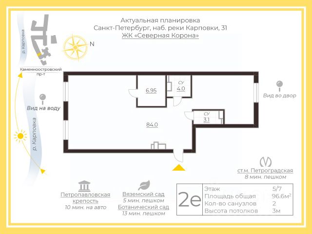 Арт. 129851093 Видовая квартира 96,6 м² свободной планировки с готовым дизайн-проектом в премиальном ЖК "Северная корона" на Петроградской стороне. Окна выходят на реку Карповку. Предлагается к продаже просторная квартира площадью 96,6 м² в современном премиальном комплексе "Северная корона" на Петроградской стороне, в точке пересечения Каменноостровского проспекта и набережной реки Карповки. Дополнительно можно приобрести с квартирой двухуровневое машиноместо на два автомобиля и закрытую кладовую прилегающую к парковочному месту! Планировка и состояние Квартира подготовлена под реализацию современного интерьера: Площадь: 96,6 м² Статус: под ремонт, есть дизайн-проект Выполнен демонтаж перегородок под новую планировку Стены выровнены и оштукатурены в соответствии с проектом Окна в пол с французскими балконами Под окнами установлены конвекторы Три мокрые зоны Высота потолков (черновая) 3,15 м, что даёт ощущение объёма и пространства Стояки опущены, что позволяет сделать ровный пол по всей площади Инженерные коммуникации подготовлены под канальное кондиционирование, рядом с квартирой расположена вентиляционная шахта, в доме предусмотрено несколько вентиляционных шахт Дом и инфраструктура комплекса Жилой комплекс "Северная корона" относится к премиальному сегменту и расположен в одном из самых статусных районов города. Внутри комплекса предусмотрены: просторное парадное лобби около 200 м² дизайнерское благоустройство дворов и общественных зон фитнес-студия только для жителей парадная гостиная для встреч, переговоров и частных мероприятий игровое пространство для детей в подъезде установлен грузовой лифт, удобный при переезде и ремонте Архитектура комплекса вдохновлена традициями северного модерна и адаптирована под современный городской формат: протяжённый фасад вдоль Карповки, продуманная пластика линий, выразительные объёмно-пространственные решения со стороны курдонера и Каменноостровского проспекта. Расположение и транспортная доступность Локация — одно из ключевых преимуществ объекта. В шаговой доступности находятся сразу несколько станций метро: "Петроградская" — около 500 м "Чкаловская" — примерно 1,3 км Звоните, чтобы записаться на просмотр и обсудить детали.