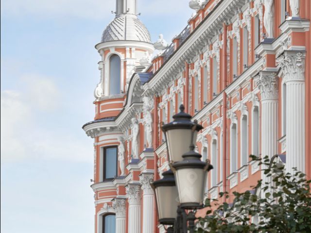 Отделка и интерьер выполнены собственником квартиры в историческом санкт-петербургском дворцовом стиле, профессионально и качественно, каждая деталь продумана до мелочей. Роспись потолков, стен и проемов создавалась художниками Академии художеств им. И. Репина и Российской Академию Живописи, Ваяния и Зодчества Ильи Глазунова. Дубовый паркет, двери, оконные рамы и элементы интерьера изготовлены на заказ в санкт-петербургских мастерских. Отдельные элементы стен, проемов, эркеров и подоконники отделаны натуральным камнем оникс. Восстановленный действующий камин с аутентичными изразцами. Квартира обустроена предметами интерьера, соответствующие элементам отделки.