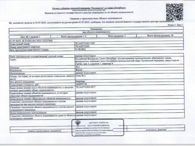 Данные получены с сайта ГИС Торги. квартира по адресу: г. Санкт-Петербург, внутригородское муниципальное образование города федерального значения Санкт-Петербурга муниципальный округ Пулковский меридиан, ул. Георгия Гречко, д.3, стр.1, кв.8, общ. пл. 30.2 кв.м., кадастровый номер 78:14:0772303:7205