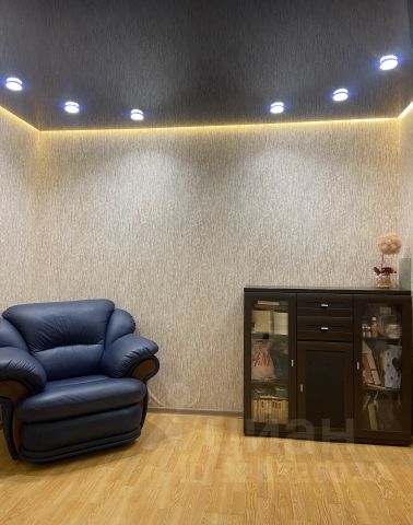 Комната площадью 18,1 квадратных метров . Окна выходят во внутренний двор, натяжные синие потолки. Всё, что в комнате остается будущим владельцам.