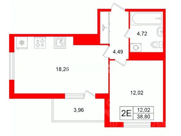 40,91 м² | 4/24 этаж | ЖК Про.Молодость, пр. Большевиков, Невский район.