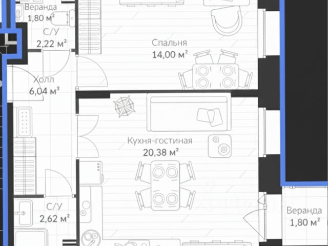 • ✅ Минимальная площадь: 44,8 м²