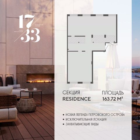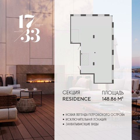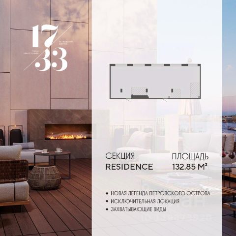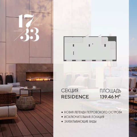 Сдаем в 2026 году! Апартамент 843 в Комплексе "17/33 Петровский остров" О проекте: Премиальный комплекс резиденций для истинных ценителей изысканной архитектуры, непревзойденного сервиса и необыкновенной панорамы Санкт-Петербурга. Уникальное расположение между Малой Невой и Петровским прудом подарит будущим резидентам неповторимое ощущение жизни на собственном уединенном острове. Уникальная локация. Проект расположен в объятьях главных островов Петербурга — Петроградской стороны, Васильевского и Крестовского, и в самой зеленой и выигрышной части Петровского — на первой линии Малой Невы, между величественной рекой и тихим Петровским прудом. До ключевых точек притяжения, любимых парков, шопинга и развлечений — пара минут на авто. 100% видовых апартаментов. Виды на Малую Невку, на Петровский пруд.; Проект разделен на три формата: Club, Life, Residence; 5-8 этажей; высота потолка до 7 метров; 1000 м2 общественных пространств; фитнес и СПА; кинозал и зал для семейных торжеств; коворкинг и детский клуб; лаундж с библиотекой; терраса площадью 120 м2 для резидентов; ELEMENT создаёт инновационные жилые и коммерческие объекты в Санкт-Петербурге и Москве, которые устанавливают новые стандарты эффективной жизни в мегаполисах.