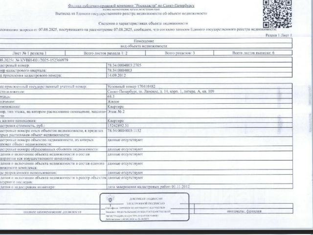 Данные получены с сайта ГИС Торги. Подвергнутое аресту принадлежащее должнику Гавриловой О. В. находящееся в залоге у АО "Эксперт Банк" имущество: квартира общей пл. 34,5 кв.м. по адресу: г. Санкт-Петербург, ш. Ланское, д. 14, корп. 1, лит. А, кв. 110 кадастровый номер 78:34:0004003:2720. Информация о задолженности по взносам на капитальный ремонт ФССП не предоставлена. Согласно представленной ФССП форме 9 от 02.07.2025 г. в квартире никто не зарегистрирован. Сведениями о лицах с правом пожизненного пользования не располагаем. Обременение - ипотека, запреты регистрационных действий ФССП.
