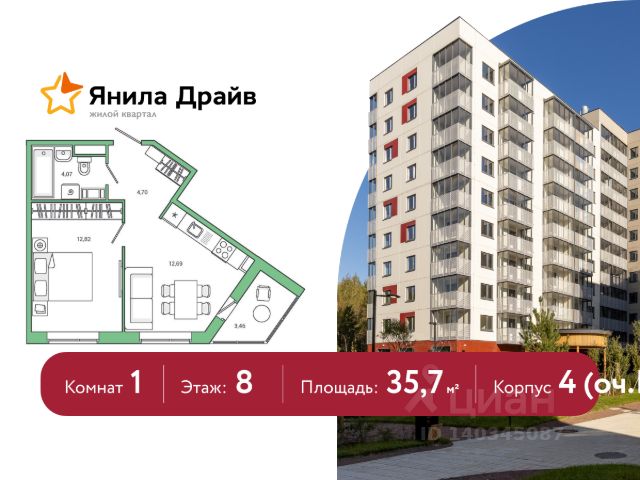 Продается квартира в ЖК Янила Драйв общей площадью 34.20 м2. Кухня - 10.54 м2, жилая площадь - 11.65 м2 Современные квартиры комфорт-класса в ЖК "Янила Драйв" - одном из самых развитых кварталов в Янино. Идеальный баланс между городским комфортом и близостью к природе. В 15 минутах от метро "Ладожская". Дома сданы - ключи сразу! Квартиры с чистовой отделкой и без. Возможность меблировки квартиры "под ключ". Почему стоит выбрать ЖК "Янила Драйв"? Уютная застройка: Никаких "человейников". Дома Янила Драйв имеют низкую и среднюю этажность, находятся на комфортном расстоянии друг от друга, и расставлены таким образом, что образуют на внутренней территории просторный закрытый двор. Благоустройство: Собственная "зеленая река" прямо во дворе - парк площадью 7 гектар для прогулок, пикников и отдыха от городской суеты, вымощенные плиткой дворы и придомовые территории, Всё готово для жизни: В квартале уже работают современные детские сады и школа. Магазины, кофейни и пекарни - прямо в вашем доме. Спорт и активность: Огромный спортивный кластер прямо во дворе! Скейт-парк, велодорожки, тренажеры под открытым небом и площадки для командных игр. Транспорт: 15 минут до метро "Ладожская" или "Проспект Большевиков". Удобный выезд на КАД в 5 минутах. Построены отапливаемые паркинги для автомобилистов. В большом объеме и регулярно ходит общественный транспорт. Особенности квартир: • Квартиры с отдельными гардеробными и несколькими санузлами • Лоджии и балконы: остекленные пространства для ваших уютных вечеров. • На верхних этажах которых расположились квартиры с террасами. Ваши выгоды при покупке в 2026 году: Ипотека (семейная, IT, субсидированные программы). Более 12 банков-партнеров, высокий % одобрения. Успейте, пока не вступили новые ограничения на семейную ипотеку. Рассрочка от застройщика до 8 лет с индивидуальным графиком платежей. Трейд-ин: обменяем вашу старую квартиру на новую в "Янила Форест", все расходы по продаже возьмем на себя Материнский капитал в качестве первоначального взноса. Акция месяца: Скидка 5% при 100% оплате, а также дополнительная скидка до 5% при посещении офиса продаж. Приезжайте за драйвом! Записывайтесь на экскурсию, чтобы оценить качество строительства, атмосферу квартала и транспортную доступность. Звоните прямо сейчас! Проконсультируем по свободным квартирам и ценам. Пишите в чат, и мы вышлем презентацию объекта и расчет ежемесячного платежа. Адрес: Янино-1, ул. Рембрандта д.4. Ждем вас! Добавьте это объявление в Избранное, чтобы первым узнать о старте новых акций!