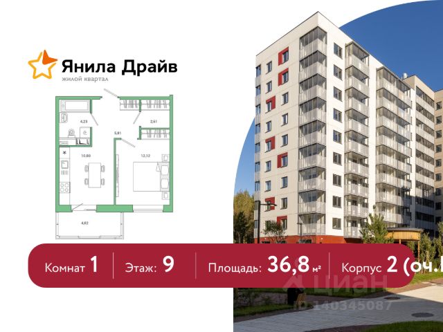 Продается квартира в ЖК Янила Драйв общей площадью 34.20 м2. Кухня - 10.54 м2, жилая площадь - 11.65 м2 Современные квартиры комфорт-класса в ЖК "Янила Драйв" - одном из самых развитых кварталов в Янино. Идеальный баланс между городским комфортом и близостью к природе. В 15 минутах от метро "Ладожская". Дома сданы - ключи сразу! Квартиры с чистовой отделкой и без. Возможность меблировки квартиры "под ключ". Почему стоит выбрать ЖК "Янила Драйв"? Уютная застройка: Никаких "человейников". Дома Янила Драйв имеют низкую и среднюю этажность, находятся на комфортном расстоянии друг от друга, и расставлены таким образом, что образуют на внутренней территории просторный закрытый двор. Благоустройство: Собственная "зеленая река" прямо во дворе - парк площадью 7 гектар для прогулок, пикников и отдыха от городской суеты, вымощенные плиткой дворы и придомовые территории, Всё готово для жизни: В квартале уже работают современные детские сады и школа. Магазины, кофейни и пекарни - прямо в вашем доме. Спорт и активность: Огромный спортивный кластер прямо во дворе! Скейт-парк, велодорожки, тренажеры под открытым небом и площадки для командных игр. Транспорт: 15 минут до метро "Ладожская" или "Проспект Большевиков". Удобный выезд на КАД в 5 минутах. Построены отапливаемые паркинги для автомобилистов. В большом объеме и регулярно ходит общественный транспорт. Особенности квартир: • Квартиры с отдельными гардеробными и несколькими санузлами • Лоджии и балконы: остекленные пространства для ваших уютных вечеров. • На верхних этажах которых расположились квартиры с террасами. Ваши выгоды при покупке в 2026 году: Ипотека (семейная, IT, субсидированные программы). Более 12 банков-партнеров, высокий % одобрения. Успейте, пока не вступили новые ограничения на семейную ипотеку. Рассрочка от застройщика до 8 лет с индивидуальным графиком платежей. Трейд-ин: обменяем вашу старую квартиру на новую в "Янила Форест", все расходы по продаже возьмем на себя Материнский капитал в качестве первоначального взноса. Акция месяца: Скидка 5% при 100% оплате, а также дополнительная скидка до 5% при посещении офиса продаж. Приезжайте за драйвом! Записывайтесь на экскурсию, чтобы оценить качество строительства, атмосферу квартала и транспортную доступность. Звоните прямо сейчас! Проконсультируем по свободным квартирам и ценам. Пишите в чат, и мы вышлем презентацию объекта и расчет ежемесячного платежа. Адрес: Янино-1, ул. Рембрандта д.4. Ждем вас! Добавьте это объявление в Избранное, чтобы первым узнать о старте новых акций!