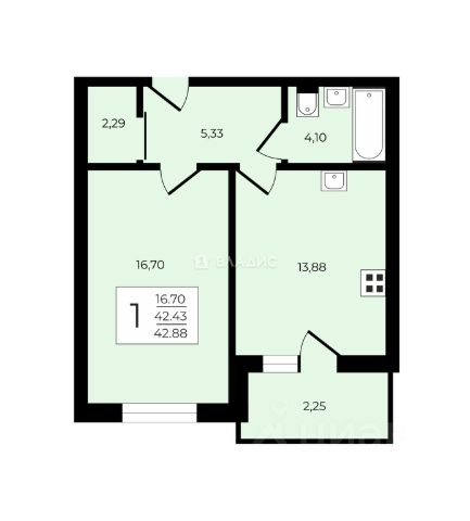 Продается просторная однокомнатная квартира: общая площадь 40,7 кв.м., площадь жилой комнаты 18,7 кв.м., площадь кухни 10,9 кв.м., план приложен.