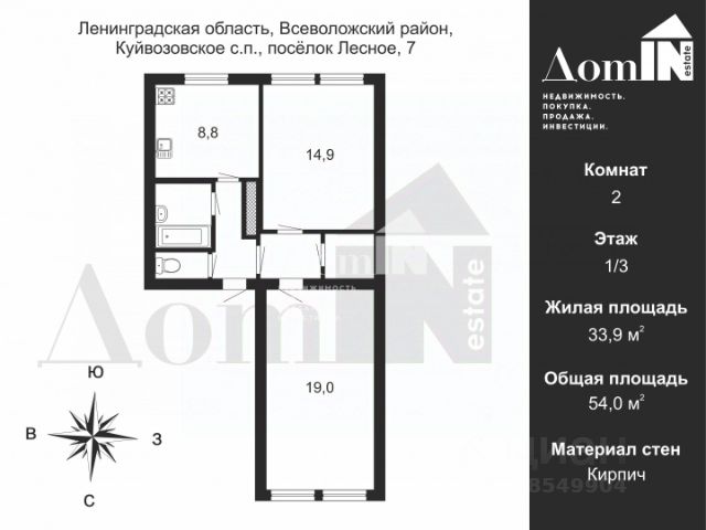 1-91312 Уютная 2-комнатная квартира в окружении леса для тех, кто ценит тишину и комфорт Предлагаем светлую и функциональную 2-комнатную квартиру 35 м² на 1 этаже кирпичного дома в тихом и зелёном посёлка Лесное. Что вы получаете: — Идеальную планировку для комфортной жизни. Изолированные комнаты. — Первый этаж — удобно для семей с детьми и пожилых людей — В шаговой доступности Лесновский центр образования — школа и детский сад в одном комплексе. Здесь же медицинский пункт (фельдшер), магазины (в т.ч. "Магнит") Отличная транспортная доступность: • 5 минут до остановки • 10 минут до ж/д станции Васкелово (электрички до СПб) • Прямой автобус до метро Проспект Просвещения (Природа кругом: лес, чистый воздух, озеро Силанде — в 3 км, Лемболовское — в 10 минутах езды. Документы готовы. Квартира без обременений. Не упустите шанс приобрести уютную квартиру в экологически чистом районе всего в 30 минутах от Петербурга — как для постоянного проживания, так и в качестве дачи. Звоните прямо сейчас! С радостью покажу квартиру и отвечу на все вопросы Итака. 30 лет на рынке.