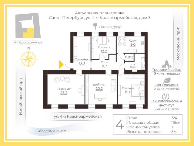 Арт. 127524756 Семейная квартира для тех, кто любит центр Санкт-Петербурга. Ключевые особенности квартиры: Простор: Высокие потолки 3 м, железобетонные перекрытия. Много солнечного света, по 2 больших окна в каждой комнате и на кухне, вид во двор и на улицу, каменные подоконники и деревянные стеклопакеты. Комфорт: удачная кухня с двумя окнами, мастер-спальня с местами хранения, кабинет, гостиная 28,2 кв.м., места хватит всем! Планировка: 4 отдельные спальни, просторная ванная, прихожая 13 кв.м. с окном; в доме нет коммунальных квартир, все соседи живут здесь давно Надежность дома: Всего 2 квартиры на этаже. Закрытый двор + парковочные места. Железобетонные перекрытия, заменены трубы отопления и водоснабжения, Уникальная локация в шаговой доступности: Метро: "Технологический Институт" (красная/синяя ветки) 5 мин пешком. Удобный выезд на Московский проспект как в сторону центра, так и в сторону Пулково Безопасность: напротив дома постоянно действующий пост полиции Центр города: 15 мин пешком. Вокзалы: Витебский (17 мин пешком), Балтийский (7 мин на авто), Московский (15 мин на метро/авто). Аэропорт Пулково: Удобный маршрут за 30 мин (метро/авто). Парки: Парк "Олимпия" 4 мин пешком. Образование: Школы ( 266, 281, 522, 317, 307, 306, 5), лицеи, худ. школа, детсады ( 114 и др.), вузы (Технолог. ин-т, Военмех, СПбГУКИ, СПбГАСУ, Пед. колледж). Культура: ТЮЗ, Молодёжный театр на Фонтанке, Театр дождей. Документы: 1 взрослый собственник. Дом не памятник архитектуры. Перепланировка узаконена; Продажа. Агентам - приятный бонус гарантирован. Приглашаем на просмотры и к сотрудничеству!