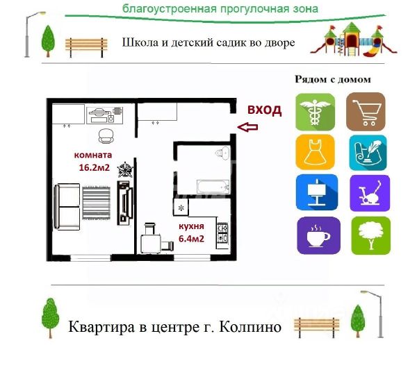 Купить квартиру рядом со школой на улице Стахановская в городе Колпино в Санкт-Петербурге