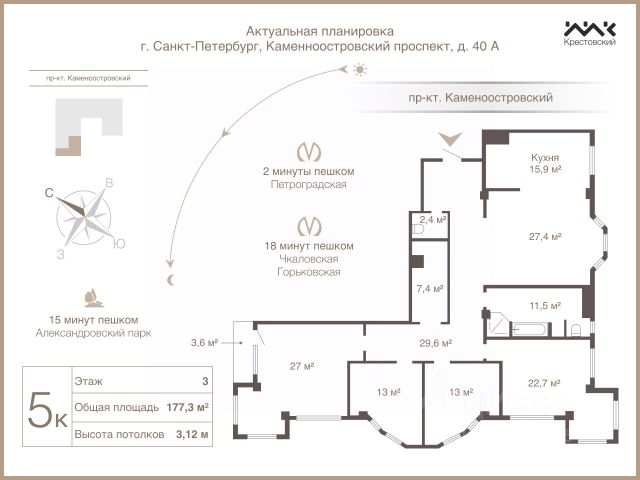 Арт. 69465781 Квартира для ценителей тихого центра и Петербургских видов! Дом расположен в респектабельном Петроградском районе, в его тихой части с уже сформированной инфраструктурой и средой. Поблизости есть детские сады, школа 77, гимназия 610, а в самом доме центр развития детей и подростков. Буквально в семи минутах ходьбы находится Петровский парк, а если прогуляться по набережной, мы окажемся на теннисном корте. Все это создает очень удобную среду для вашего проживания. В доме трёхступенчатая система очистки воды, бесшумные лифты марки Stein, своя котельная. Безопасность обеспечивается видеонаблюдением по всему периметру, а в парадной вас встречает внимательный консьерж. Из таких мелочей и складывается комфортная жизнь. Заходя в квартиру, вы попадаете в просторную шестнадцатиметровую прихожую, где поместится и система хранения, и элементы декора, подчёркивающие индивидуальность жильцов. Дальше мы проходим в гостиную, размер которой заставляет фантазировать о кабинетном рояле. Сама квартира очень светлая, в ней целых десять окон, из которых вы будете смотреть на шпиль Петропавловской крепости. Это ли не мечта Петербужца? Приятная особенность нашего лота - эксплуатируемая кровля, где можно провести романтический ужин, посмотреть фейерверки и полюбоваться видом на город. Смотровая площадка на крыше застелена террасной доской и украшена цветами в кадках, за чистоту и порядок здесь отвечает управляющая компания. Квартирапродается без отделки. Фото с ремонтом сгенерированы с помощью ИИ для визуализации, как она может выглядеть! Если вы все еще видите этот лот в рекламе, у вас еще есть шанс записаться на просмотр и купить квартиру мечты! Просмотры строго по записи!