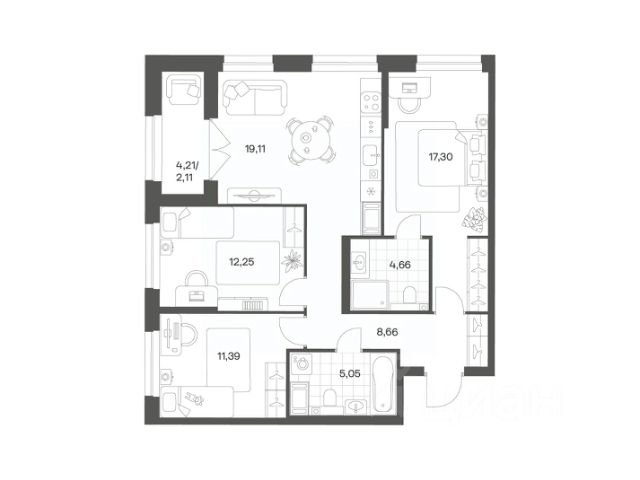 Продается квартира площадью 79.28 м² на 5 этаже 1 секции в Речной квартал от компании ГК "ТРЕСТ". Площадь кухни 18.24 м². Семейный жилой комплекс комфорт-класса "Речной квартал" от Группы компаний "ТРЕСТ" расположен в Невском районе Петербурга на пересечении Октябрьской набережной и Русановской улицы. Первая очередь квартала состоит из трёх корпусов, расположенных лучеобразно, чтобы максимально использовать естественное освещение и обеспечить видовые точки на локацию. Проект выделяется современными архитектурными решениями и дизайном. Концепция развития и благоустройства придомовой территории разделена на зоны отдыха, досуга и игровые площадки с учетом возраста и потребностей детей и взрослых. Квартал рассчитан на семейных покупателей, поэтому здесь нет студий: только одно-, двух- и трёхкомнатные квартиры. В проекте представлены квартиры с кухнями-гостиными, мастер-спальнями, гардеробными и кладовыми. "Речной квартал" - современный жилой комплекс с разнообразным благоустройством придомовой территории, просторными европланировками, закрытой охраняемой территорией и подземными паркингами. На территории комплекса уже функционирует детский сад на 110 мест. Также в квартале будет построена общеобразовательная школа на 475 мест с бассейном и стадионом. Открытие школы запланировано на 2029 год. Квартиры в ЖК "Речной квартал" можно приобрести с готовой отделкой от застройщика. Для покупателей квартир предусмотрено два варианта чистовой отделки "Ваниль" и "Шоколад". Чистовая отделка в квартирах ЖК "Речной квартал" предполагает монтаж натяжных потолков, укладку ламината, оклейку стен обоями под покраску, установку светильников и межкомнатных дверей. При отделке новой квартиры применяются качественные, натуральные и экологичные материалы, монтируется стильная импортная сантехника европейских брендов. В объявлении указана стоимость квартиры при 100% оплате. При других формах оплаты - базовую стоимость квартиры уточняейте на официальном сайте компании или у менеджера отдела продаж. Застройщик АО "Специализированный застройщик "Строительный трест".