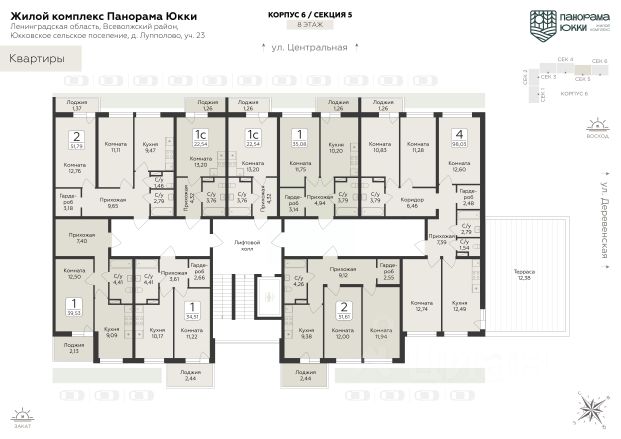 Более 60 вариантов планировок площадью от 22 до 79 м² — от студий до семейных квартир. Доступны форматы с кухнями-гостиными, мастер-спальнями, гардеробными и двумя санузлами. Отдельный формат — квартиры с террасами до 70 м² на верхних этажах.