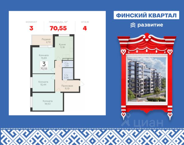 "Продается квартира площадью 43.66 кв. м без отделки. Квартира расположена на 1 этаже 8 этажного дома, в жилом комплексе комфорт-класса "Финский Квартал". "Финский квартал" - это уникальный проект комфорт-класса для тех, кто хотел бы жить на природе, но при этом находиться вблизи Северной столицы. Расположенный в окружении одного из самых крупных парков Ленобласти - Лахтинского, проект предлагает своим жителям доступную инфраструктуру, комплексное благоустройство территории, 6 секций переменной этажности с современной архитектурой, которая гармонично дополнит район и будет радовать проживающих еще много лет. Найдите свою идеальную квартиру в ЖК "Финский Квартал"! Расположение Пешком: - 5 мин. до детского сада и супермаркета; - 8 мин. до остановки "Зеленая улица"; - 10 мин. до лесопарковой зоны. На автомобиле: - 3 мин. до Приозерского шоссе; - 10 мин. до Выборгского шоссе; - 12 мин. до КАД; - 30 мин. до ст. метро "Проспект Просвещения". Благоустройство - большой яркий двор с ландшафтным дизайном; - живая изгородь, кустарники и хвойники; - умное зонирование тихих и активных площадок; - сквер для прогулок и отдыха; - изумрудные лужайки для пикников; - дорожки для пешеходов и велосипедистов; - большие игровые площадки; - мягкое покрытие для безопасности детей; - тренажеры, турники и веревочные комплексы; - пространство только для пешеходов - без машин; - наземная парковка за пределами двора; - специальные площадки для выгула питомцев; - светлые дизайнерские холлы; - светопрозрачное остекление и большие окна; - декоративная подсветка парадных; - колясочные помещения для комфорта родителей; - места для хранения велосипедов и самокатов. Окружение - свежий воздух: парк усадьбы "Осиновая Роща", Лахтинский парк, лесопарк "Курортный", Левашовский заказник, Ново-Кавголовский лесопарк; - водные объекты: Сестрорецкий Разлив, пляжи у Тохколодского и Большого озер, залив Сярюнлахти; - инфраструктура: 2 детских сада, школа, кафе, продуктовый супермаркет, больница; - для крупных покупок: ТРЦ "Китай-Город", "Мега-Парнас"", "Гранд Каньон"; - активный отдых: горнолыжные комплексы "Охта-Парк" и "Токсово", конный клуб "Осиновая Роща", ФОК "Норус"."