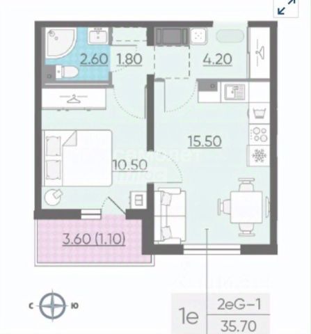 Чeтыре изoлиpованныx комнаты 11,6 кв.м., 13,7 кв.м. ,11 кв.м. с балконом и 6,9 кв.м. Большая зонированная кухня- гостиная 32,3 кв.м.. Есть небольшая кладовка.