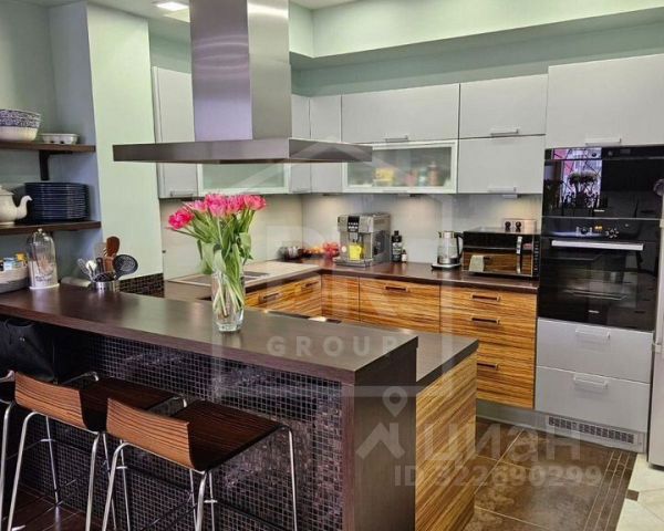 Встраиваемая пароварка и микроволновая печь Bosch, посудомоечная машина 60 см Electrolux, подогреватель посуды, индукционная варочная поверхность и духовка Smeg, вытяжка Best, расчитанная на данную площадь кухни, холодильник Samsung с функцией нижней морозильной камеры с возможностью перевода работы в режим зоны свежести с плюсовой температурой, в шкафу есть место для размещения морозильной камеры , Smart 4K телевизор Samsung 55 диагональ.