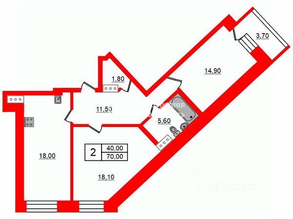 Большая, просторная 2-сторонняя с 2-мя санузлами: