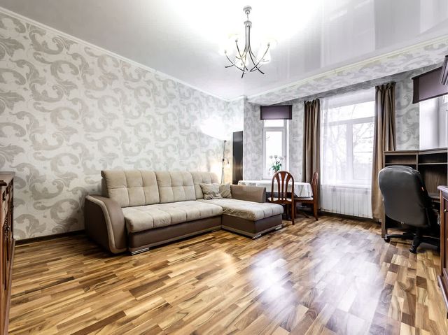 Главной гордостью квартиры является собственный и единственный в этом доме и законный выход на террасу, откуда открывается вид на реку Фонтанку, исторический Троицкий собор и живописные крыши старинных питерских зданий. Двухуровневая планировка с высокими классическими потолками (3,7 м) создает уютный уголок для жизни и релаксации.