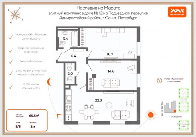 Приглашаем на просмотр уникальной квартиры в центре Петербурга, в камерном отдельно стоящем доме. Здесь соседствуют всего 10 квартир. Построенный в начале XX века для офицерских семей, дом хранит дух старого Петербурга, что чувствуется в его солидной архитектуре и планировках. Квартира находится в единоличной собственности с 2003 года. Планировка и атмосфера В квартиру можно заезжать и комфортно жить без вложений. Если новым хозяевам захочется поменять стилистику интерьера, то вы будете приятно удивлены подготовка поверхностей выполнена настолько безупречно, что любой дизайн-проект воплотится быстро и с минимальными вложениями, применив любое финишное покрытие. Просторная спальня с большим встроенным стенным шкафом 15,6 кв.м. и уютная кухня-столовая 13 кв.м. окнами выходят в сад Театра Юных Зрителей — утром здесь можно пить кофе, под пение птиц с видом на тенистый парк. Еще две светлые комнаты 16,4 и 20,4 кв.м. обращены на тихий Подъездной переулок. Дополняет планировку небольшой кабинет 7 кв.м., а в прихожей организован вместительный гардероб с системой хранения для сезонных вещей. Высокие потолки 3,2 м наполняют квартиру воздухом. Все здесь продумано основательно, жить в такой квартире хочется размеренно и с удовольствием. В основе монолитное перекрытие, несущие кирпичные стены и полная замена всей инженерии. В 2022-23 г.г. в доме проведен капитальный ремонт систем тепло-, водоснабжения и водоотведения, а в 2010 году отремонтирована крыша всего дома. Заменена общедомовая электропроводка, и внутри квартиры. Уникальные особенности и потенциал • Владелец с большим вниманием восстанавливал историческое наследие квартиры: отреставрирован дубовый паркет и рабочий камин, который в межсезонье эффективно обогревает жилье, • Подлинная историческая печь и уникальная для своего времени система индивидуальной вентиляции в каждой комнате представляют особую ценность, и создают комфортный микроклимат. • В квартире есть черная лестница, ведущая на мансардный этаж, средняя высота которого 2 метра, в коньке крыши 3 метра. Планировка позволяет организовать лестницу на перспективный второй уровень, значительно расширив пространство. Комфорт и инфраструктура • Дом стоит в тихом переулке, в шаговой доступности от всех главных достопримечательностей Петербурга. В другую сторону, по пешеходному мосту через канал, можно прогуляться до крупнейшего в мире Планетария. • В вашем распоряжении собственное автоместо на закрытой внутридворовой парковке. Рядом две станции метро Пушкинская, Звенигородская. Удобный выезд на Обводный канал и Витебский пр-кт позволяет быстро доехать в любую часть города. С Витебского вокзала можно доехать до дворцово-парковых ансамблей Пушкина и Павловска. Поезда походят к вокзалу на тихом ходу, и на Подьездном пер. их совсем не слышно. • В 5 мин пешком большой супермаркет Перекрёсток, это редкое преимущество для центра. Рядом городская поликлиника, детские сады и школы. Разумный торг. Приходите в гости, оставайтесь жить! Продам квартиру (вторичка) в переулке Подъездной в Санкт-Петербурге.