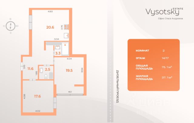 Просторная 3-комнатная квартира в современном жилом комплексе "Две Столицы". Основные характеристики: Высокие потолки 3 м Окна на две стороны: много света и воздуха Качественная отделка, меблировка и техника Отдельная гардеробная комната Большая благоустроенная лоджия Светлая просторная кухня 14,6 м² Инфраструктура: На 1 этаже дома есть комната для хранения колясок и велосипедов. Зеленый, благоустроенный двор. Наземная и подземная парковки. В пешей доступности магазины, булочные, кафе, школа, спорт-центры и прочее. Отличная транспортная доступность. Полное юридическое сопровождение сделки. Гарантия безопасности. Один взрослый собственник. Никто не прописан. Прямая продажа. Звоните прямо сейчас для записи на просмотр. Продается квартира на вторичном рынке на проезде Дизельный в Санкт-Петербурге.