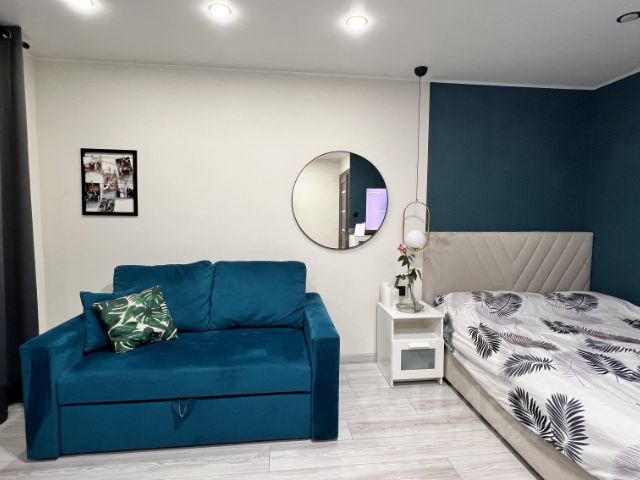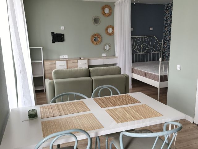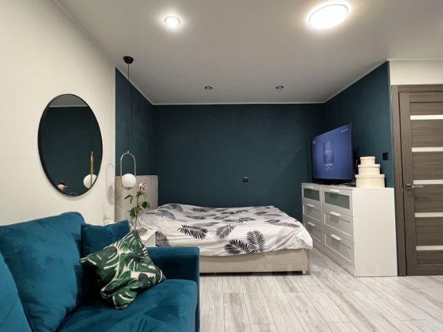 - В квартире остается абсолютно вся мебель: 2 больших шкафа, 2х спальная кровать с ортопедическим матрасом, диван, который разбирается в дополнительное спальное место, зеркало в полный рост, стеллажи для книг, большой обеденный стол со стульями, влагостойкий кухонный гарнитур, кронштейн для телевизора, который позволит смотреть телевизор как в кровати, так и на диване.