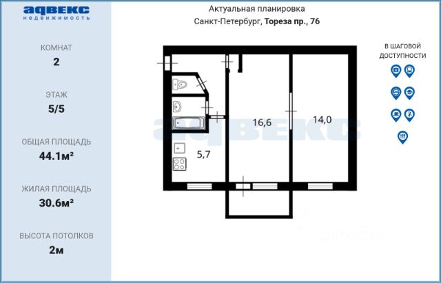 • ✓ В базе Циан 61 квартир (вторичка) на проспекте Тореза в Санкт-Петербурге.