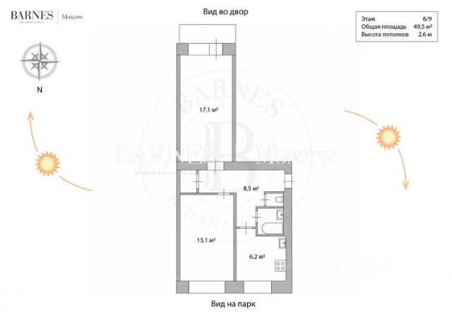 Просторная и светлая 3-комнатная квартира, окна выходят во двор — всегда тихо и спокойно.