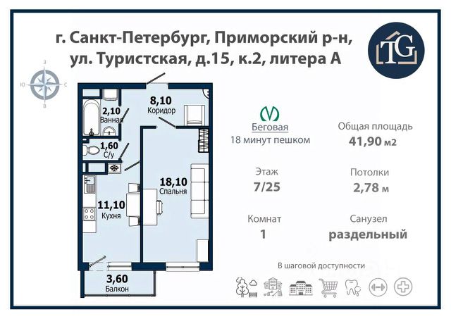 Однокомнатная квартира площадью 33,2 кв. м в современном доме в престижном районе мегаполиса — отличный выбор для жизни и сдачи в аренду. Объект находится в отличном состоянии, что подтверждают актуальные фотографии. Квартира расположена в благоустроенном районе с развитой инфраструктурой: в шаговой доступности находятся школы, детские сады, игровые площадки, супермаркет "ОКей", отделения банков, поликлиники, кафе и пункты выдачи заказов. Остановки общественного транспорта расположены в 35 минутах ходьбы, что обеспечивает удобную транспортную доступность во все районы города. В непосредственной близости от дома оборудованы площадки для выгула и дрессировки собак, недалеко расположен Юнтоловский лесопарк — идеальное место для прогулок, занятий спортом и отдыха на природе. Дом поддерживается в отличном техническом состоянии, придомовая территория ухожена. Квартира подойдет как для комфортного проживания, так и для инвестиций — район пользуется стабильным спросом благодаря удобной локации и развитой инфраструктуре. Звоните и записывайтесь на просмотр! Код пользователя: 59408 Номер в базе: 8286486 Продается квартира на вторичном рынке на улице Туристская в Санкт-Петербурге.